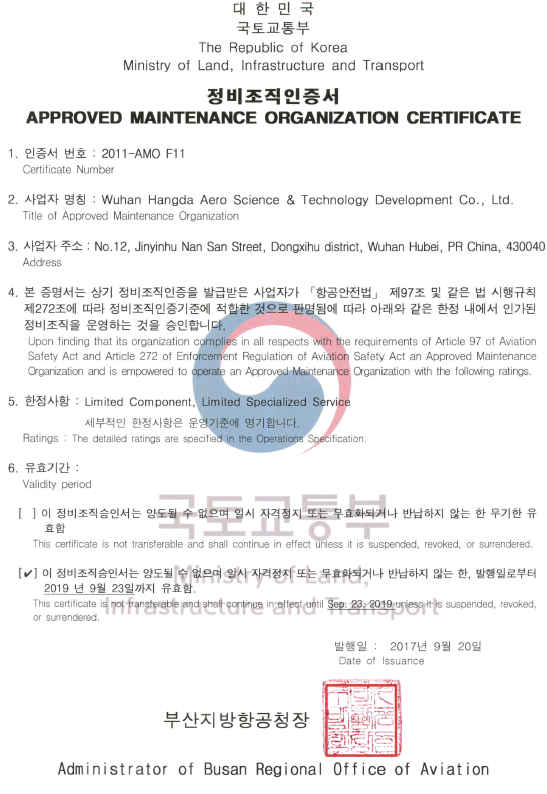 2019年11月 徑河廠區獲得CAAC、FAA維修許可。